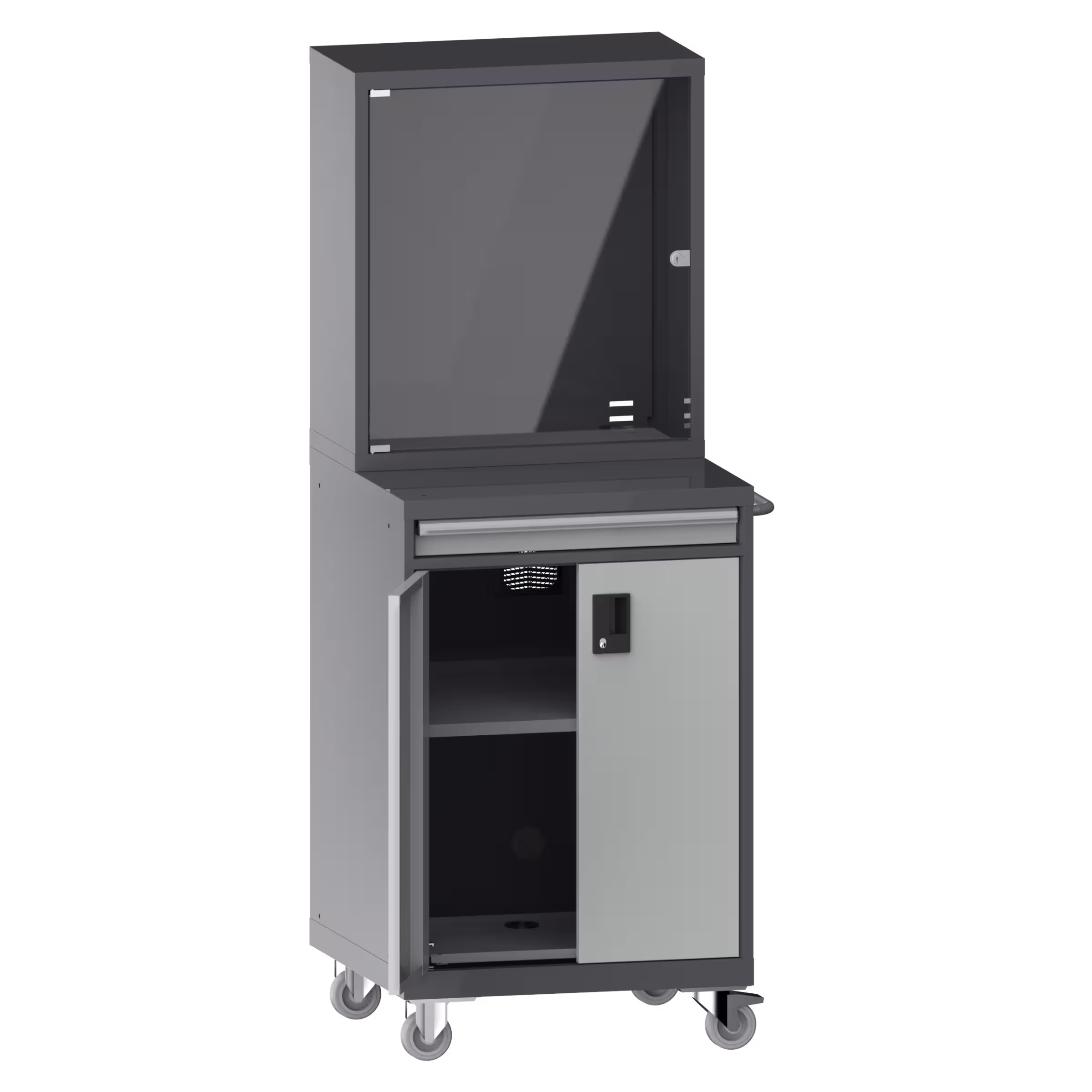 1 Monitorfach mit rechts anschlagender Flügeltür, mit Zylinderschloss,