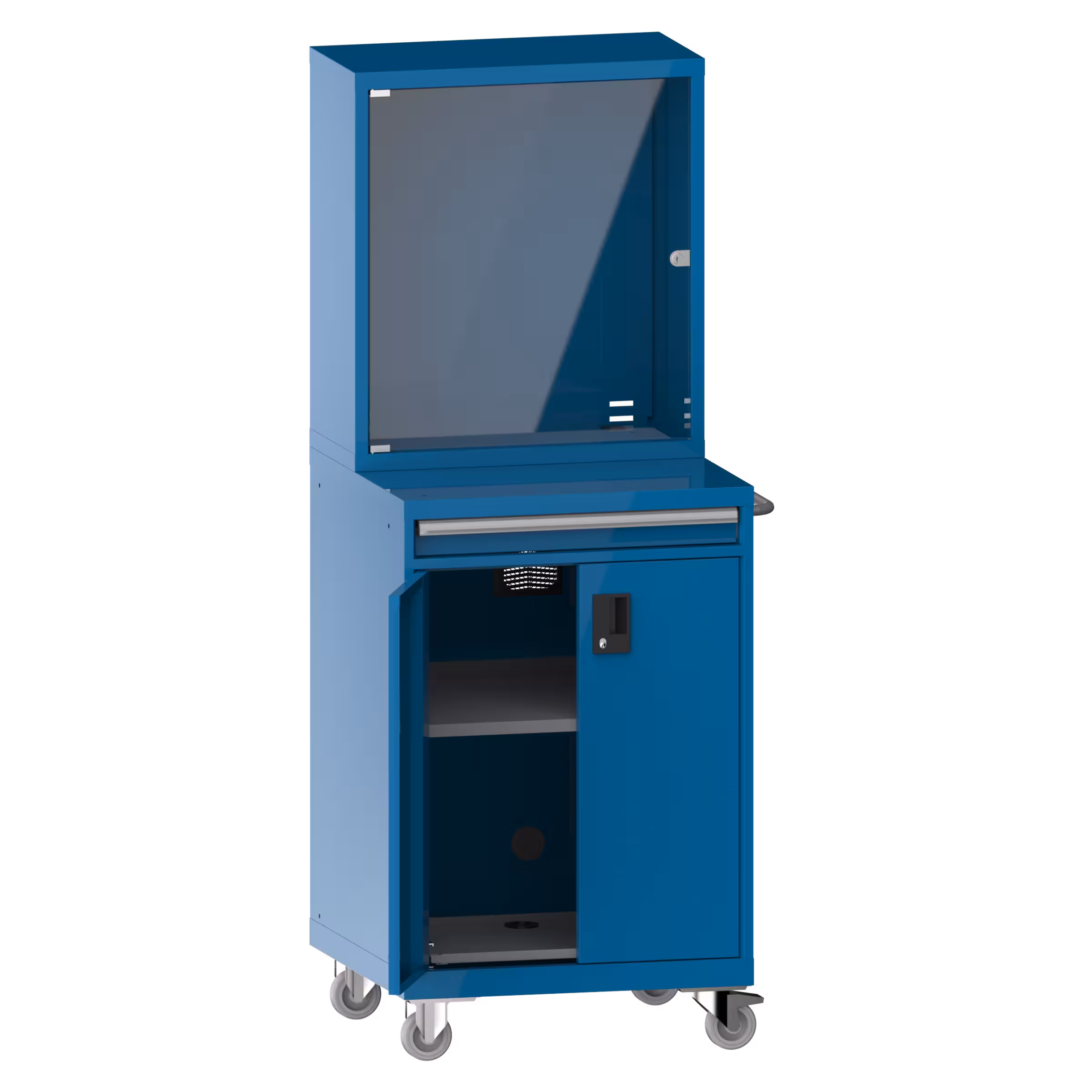1 Monitorfach mit rechts anschlagender Flügeltür, mit Zylinderschloss,