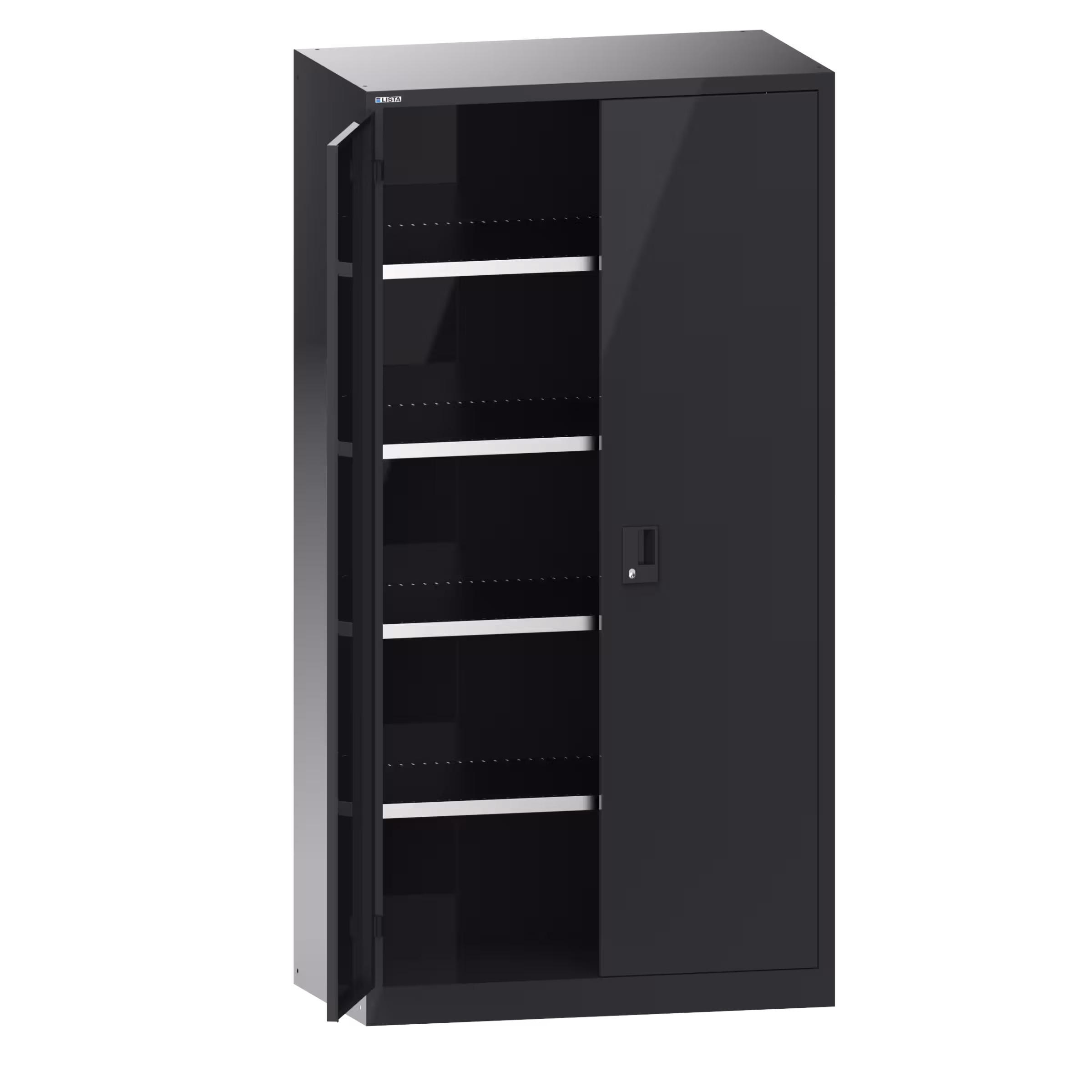 Flügeltürschrank mit 2 Vollblech-Türen Scharnierlagerung (BxTxH) 1000x580x1950mm 4 Verstellböden KEY Lock Anthrazitgrau RAL 7016