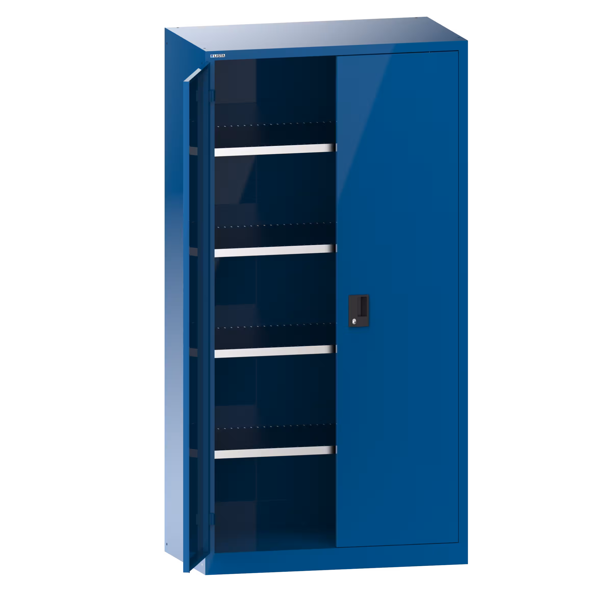 Flügeltürschrank mit 2 Vollblech-Türen Scharnierlagerung (BxTxH) 1000x580x1950mm 4 Verstellböden KEY Lock Capriblau RAL 5019