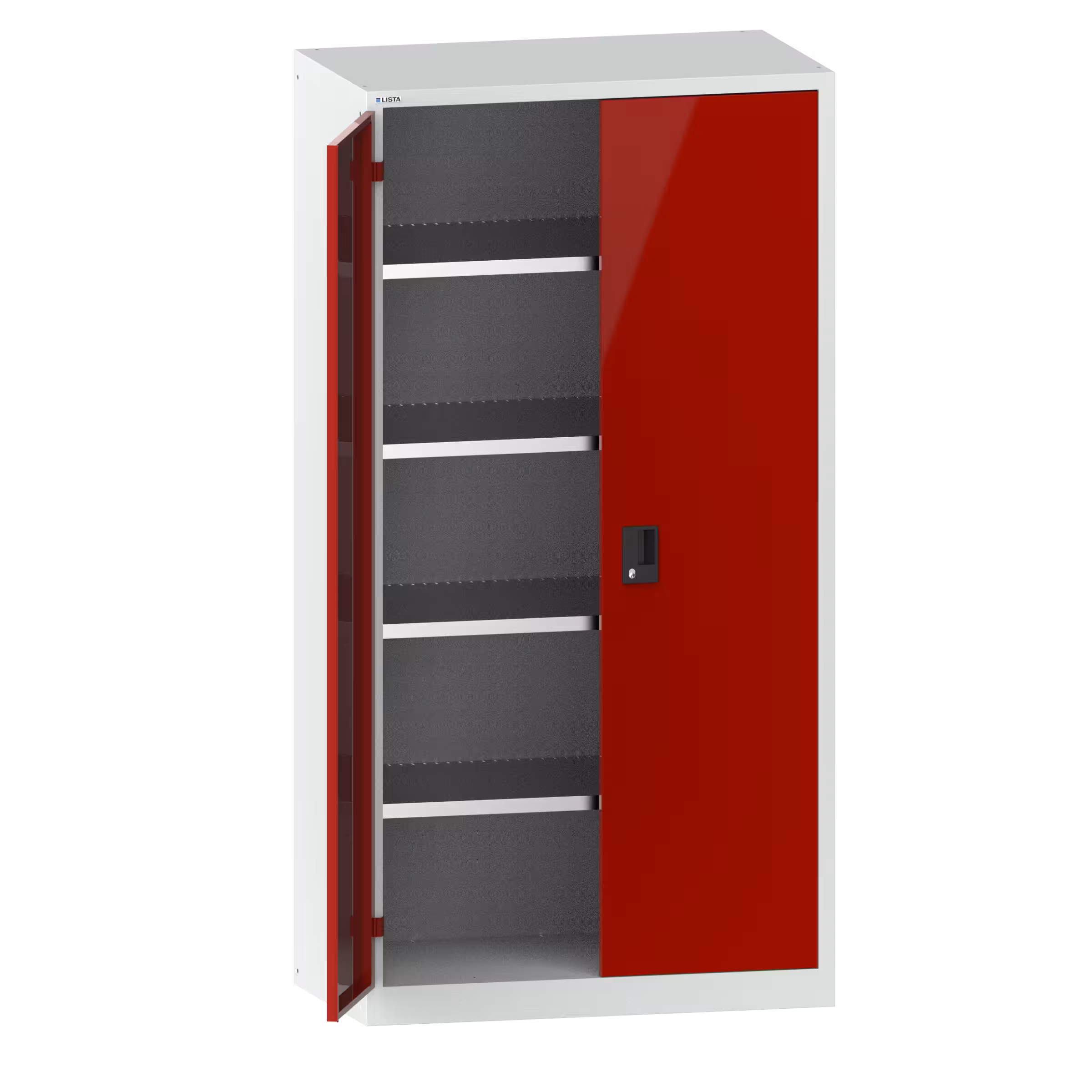 Flügeltürschrank mit 2 Vollblech-Türen Scharnierlagerung (BxTxH) 1000x580x1950mm 4 Verstellböden KEY Lock Lichtgrau RAL 7035 / Rubinrot RAL 3003