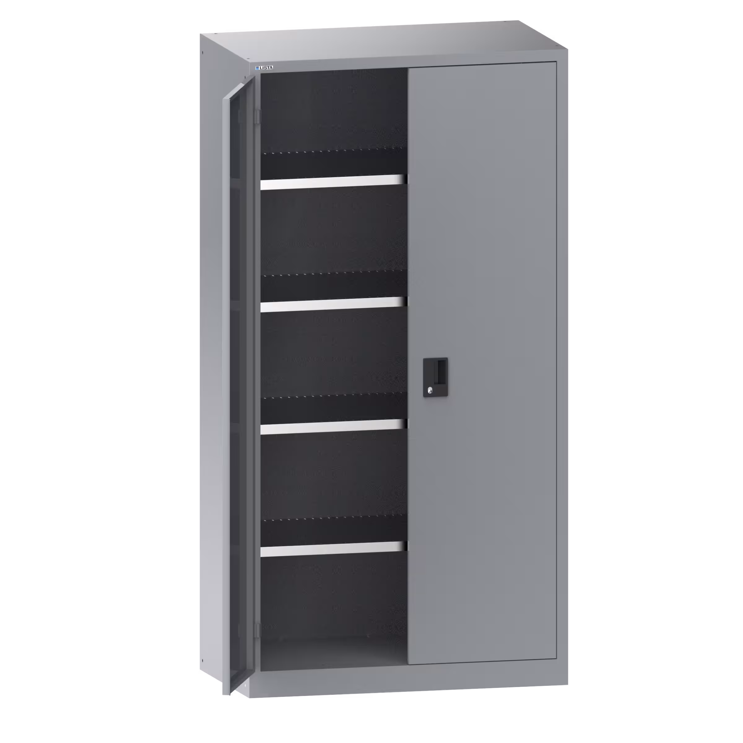 Flügeltürschrank mit 2 Vollblech-Türen Scharnierlagerung (BxTxH) 1000x580x1950mm 4 Verstellböden KEY Lock Taubengrau NCS S 4502-B