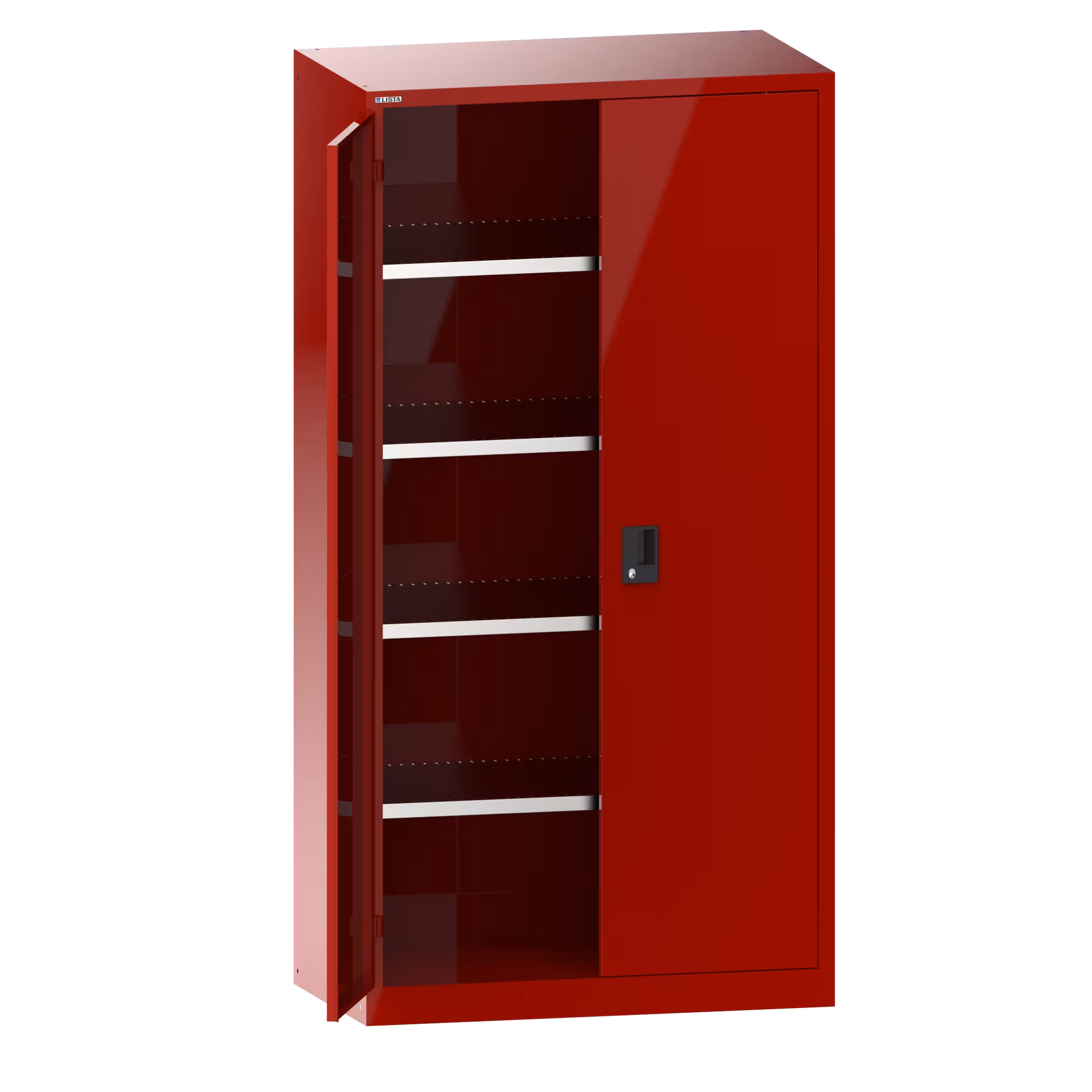 Flügeltürschrank mit 2 Vollblech-Türen Scharnierlagerung (BxTxH) 1250x580x1950mm 4 Verstellböden CODE Lock Rubinrot RAL 3003