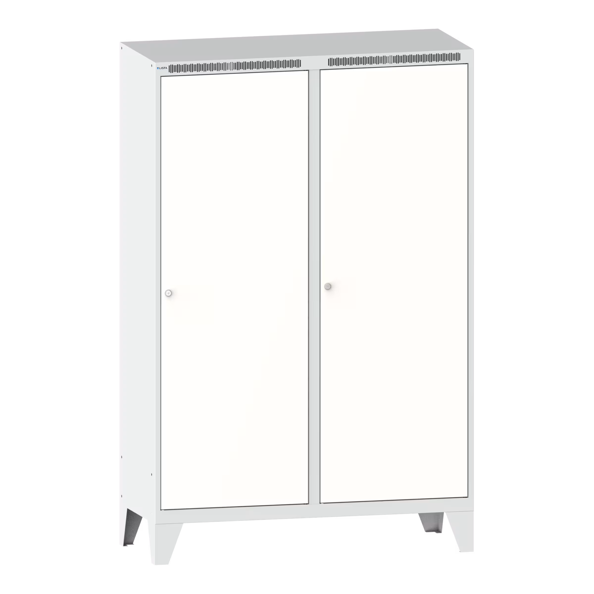 Garderobenschrank (BxTxH) 1200x500x1850mm 4 Abteile mit Füssen, Türen glatt, KEY Lock Lichtgrau RAL 7035 / Reinweiss RAL 9010