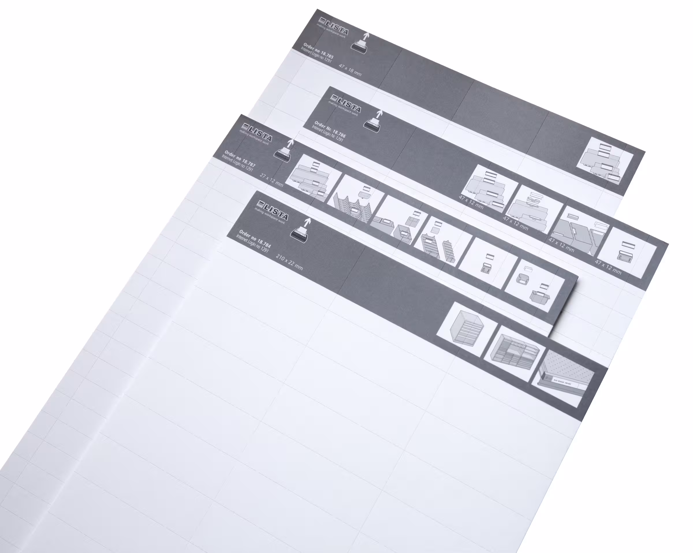 2 A4-Bögen à 210 x 22 / 70 x 22 mm, 76 Etiketten à 47 x 12 mm, 52 Etiketten à 47 x 18 mm, 133 Etiketten à 27 x 12 mm