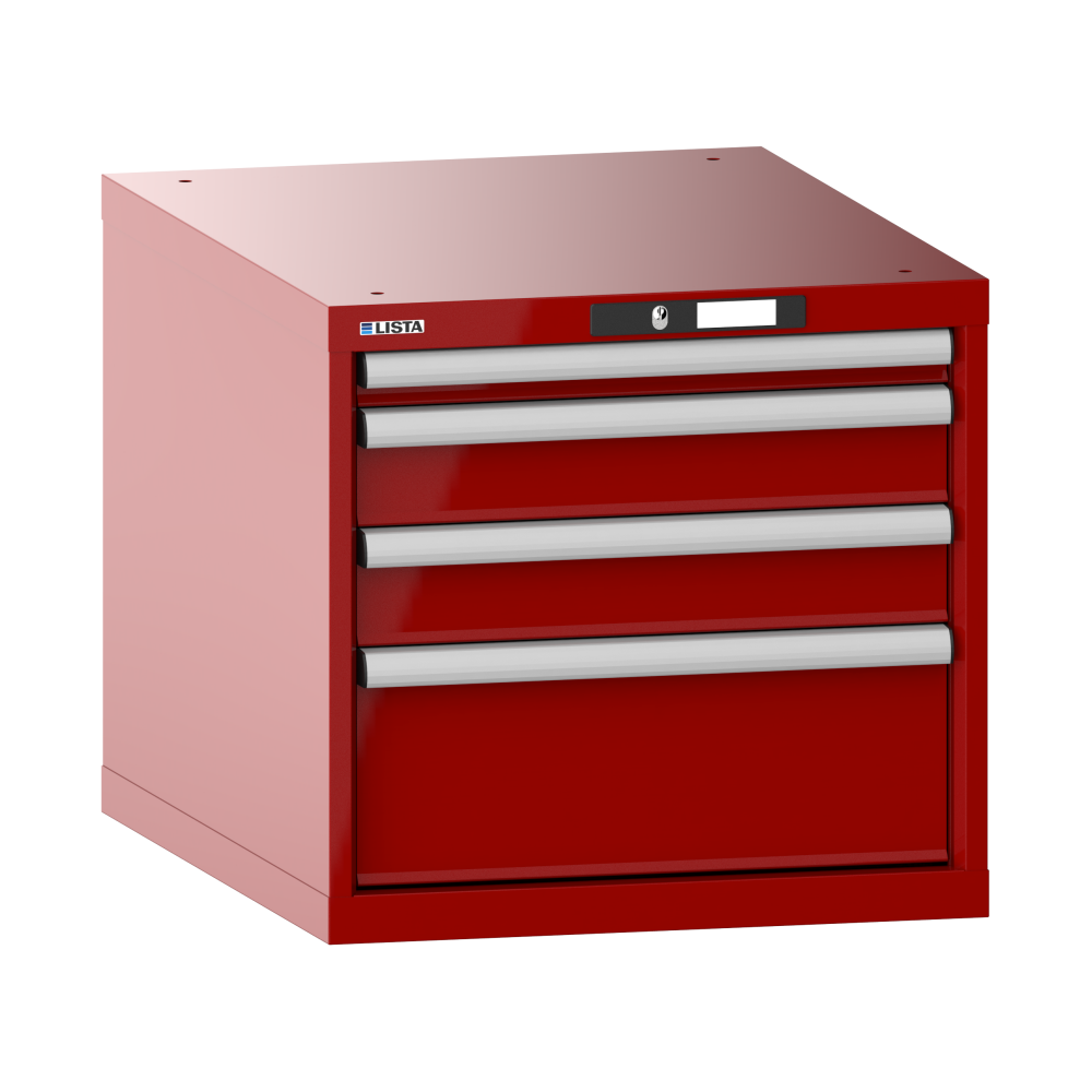 Schubladenschrank 27x36E (BxTxH) 564x725x533mm 4 Schubladen (1x50/2x100/1x200) 75kg AUTO Lock Rubinrot RAL 3003
