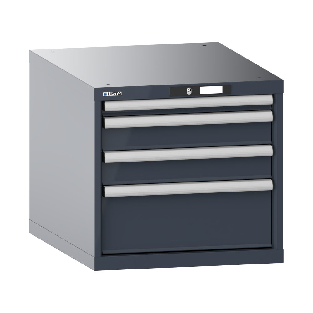 Schubladenschrank 27x36E (BxTxH) 564x725x533mm 4 Schubladen (1x50/2x100/1x200) 75kg AUTO Lock Schiefergrau RAL 7015