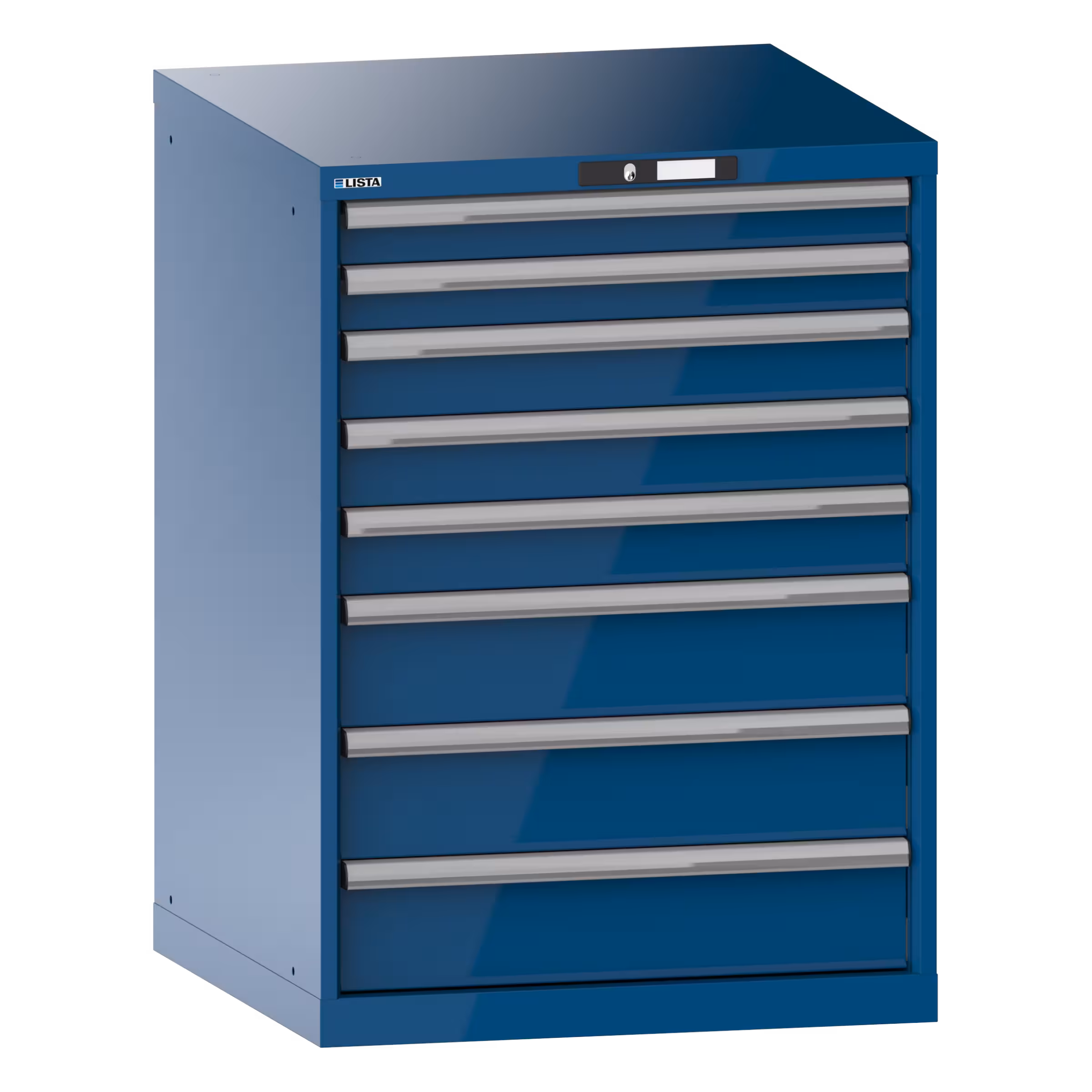 Schubladenschrank 36x36E (BxTxH) 717x725x1000mm 8 Schubladen (2x75/3x100/3x150) 75kg KEY Lock Capriblau RAL 5019