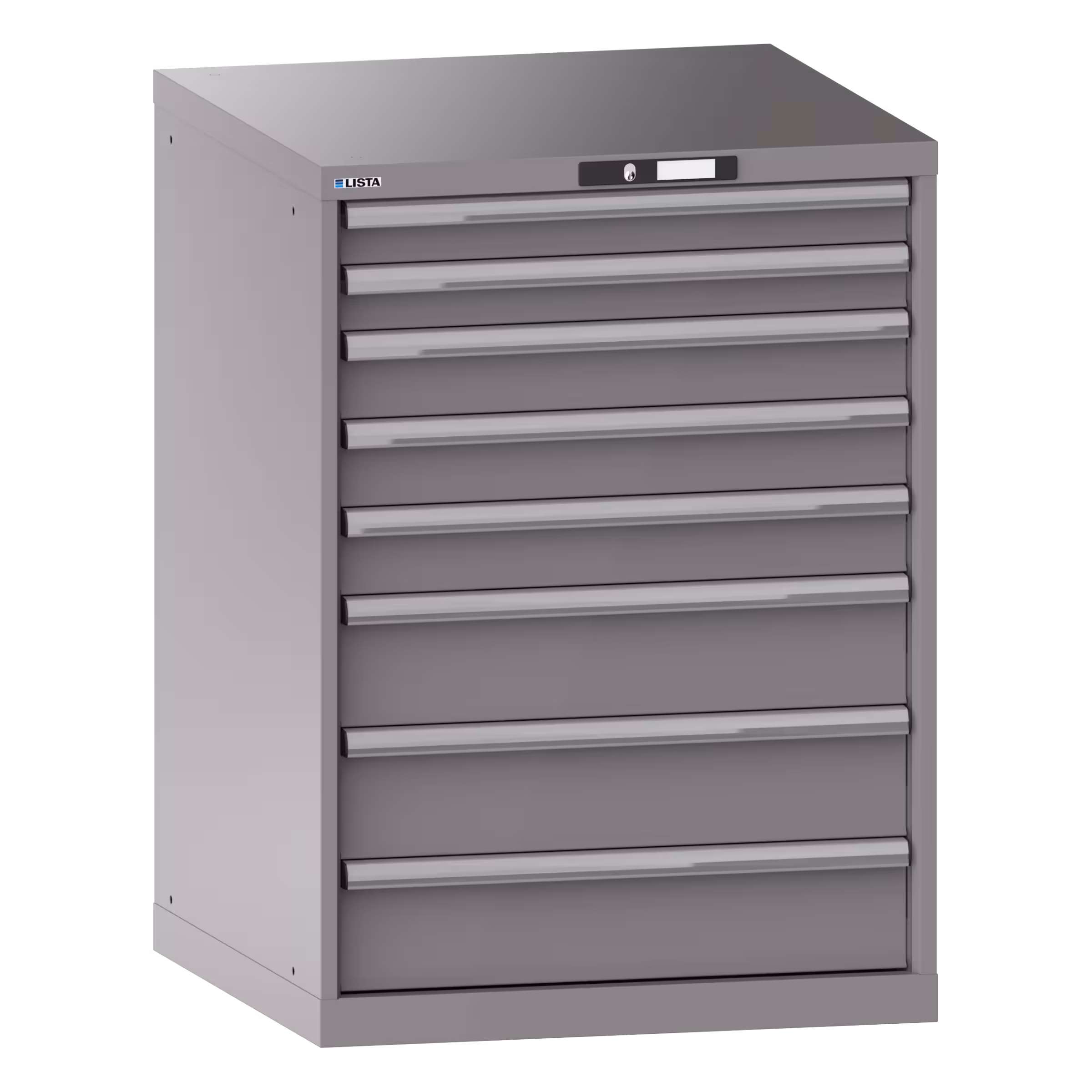 Schubladenschrank 36x36E (BxTxH) 717x725x1000mm 8 Schubladen (2x75/3x100/3x150) 75kg KEY Lock Graualuminium RAL 9007