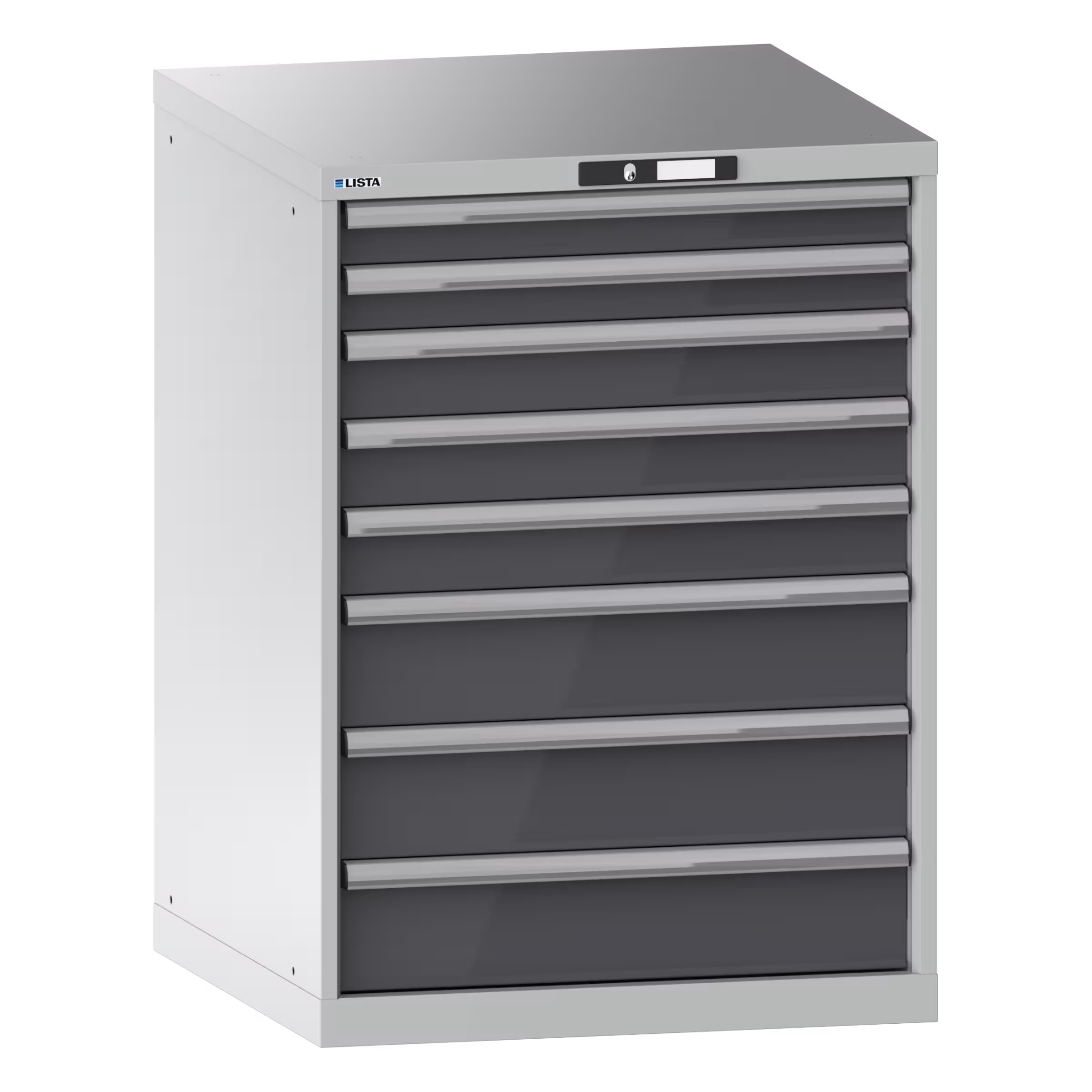 Schubladenschrank 36x36E (BxTxH) 717x725x1000mm 8 Schubladen (2x75/3x100/3x150) 75kg KEY Lock Lichtgrau RAL 7035 / Grau metallic NCS S 6502-B