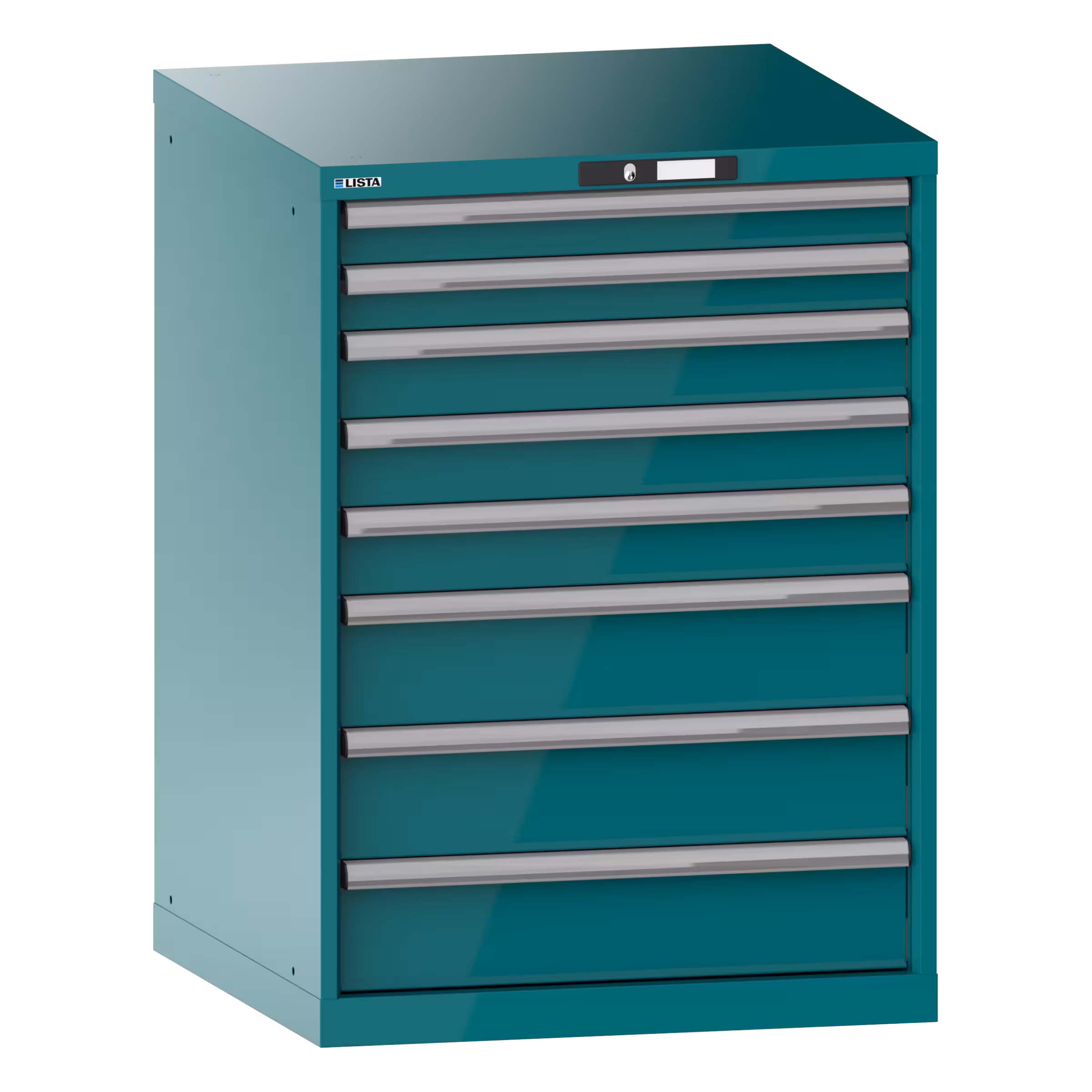 Schubladenschrank 36x36E (BxTxH) 717x725x1000mm 8 Schubladen (2x75/3x100/3x150) 75kg KEY Lock Türkisblau RAL 5018