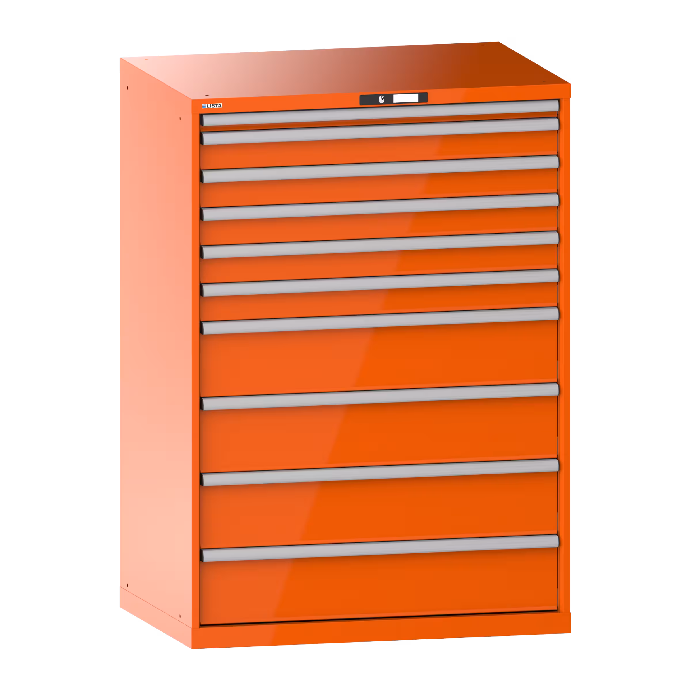 Schubladenschrank 54x36E (BxTxH) 1023x725x1450mm 10 Schubladen (1x50*/5x100/4x200) *75/200kg KEY Lock Orange RAL 2004