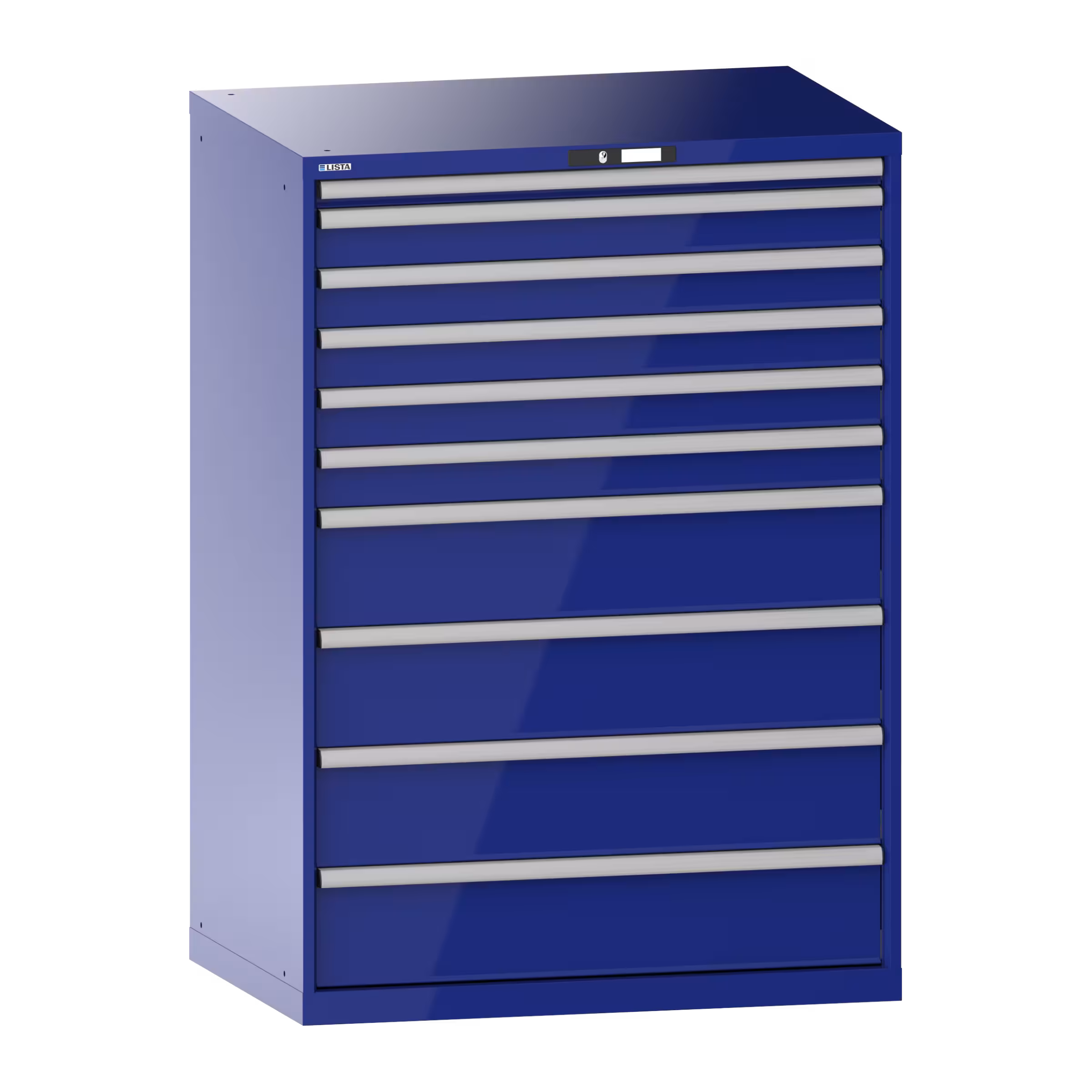 Schubladenschrank 54x36E (BxTxH) 1023x725x1450mm 10 Schubladen (1x50*/5x100/4x200) *75/200kg KEY Lock Ultramarinblau RAL 5002