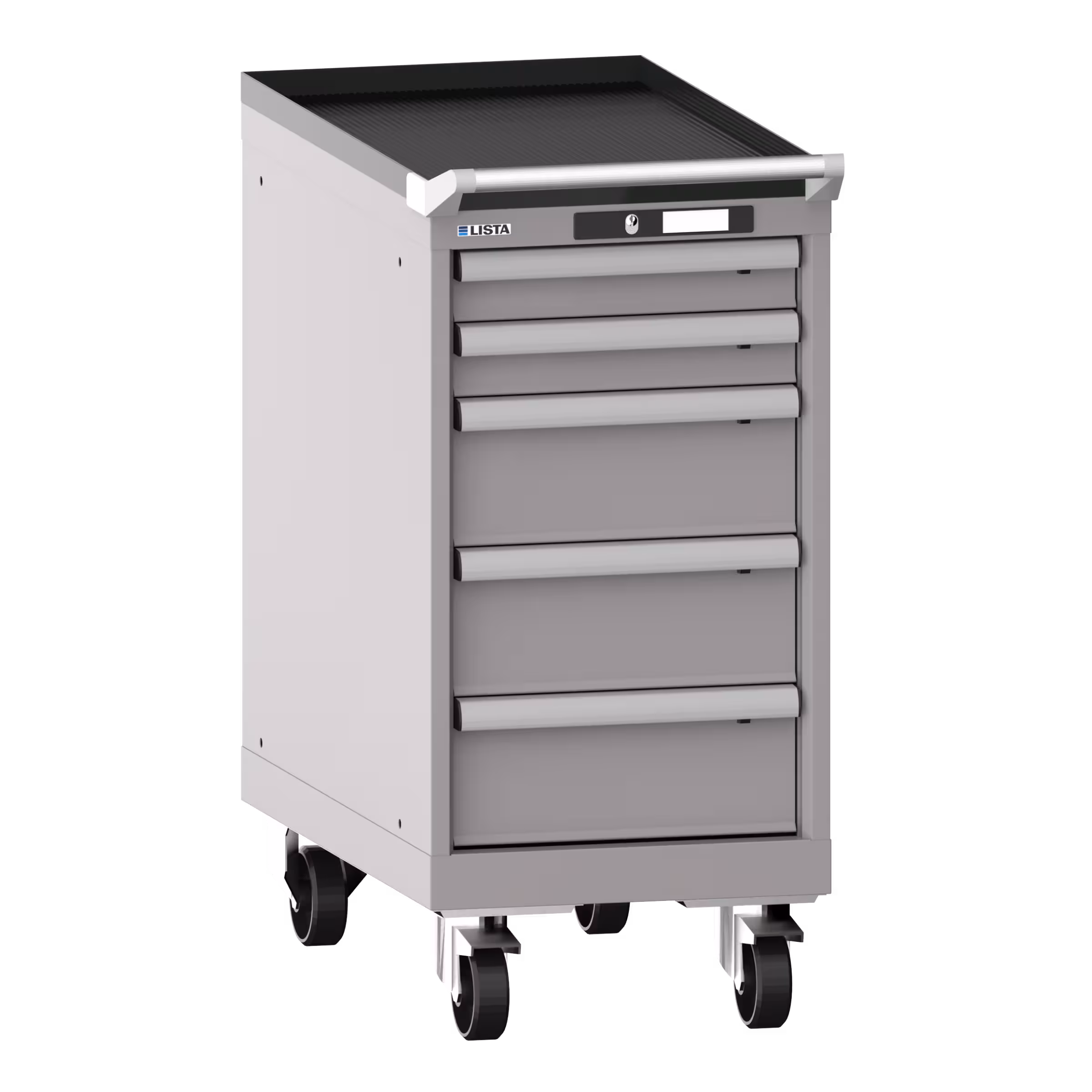 Schubladenschrank mobil 18x36E (BxTxH) 411x725x890mm 5 Schubladen (2x75/3x150) 75kg Nylonrollen Ø100mm KEY Lock Graualuminium RAL 9007