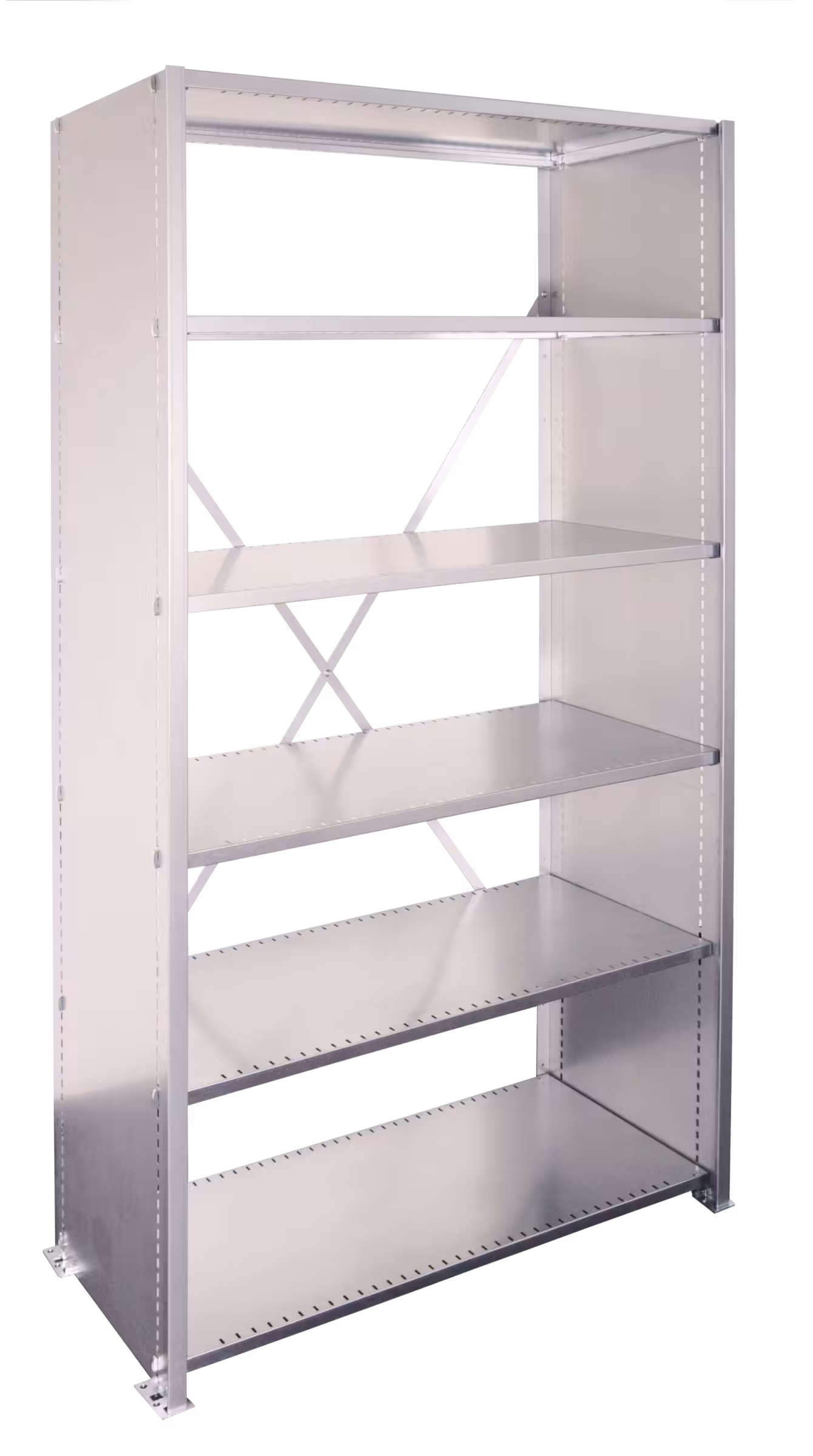2 Vollblech-Seitenwände, 1 Diagonalkreuz verzinkt, Fachböden glatt (Stärke 25 mm)