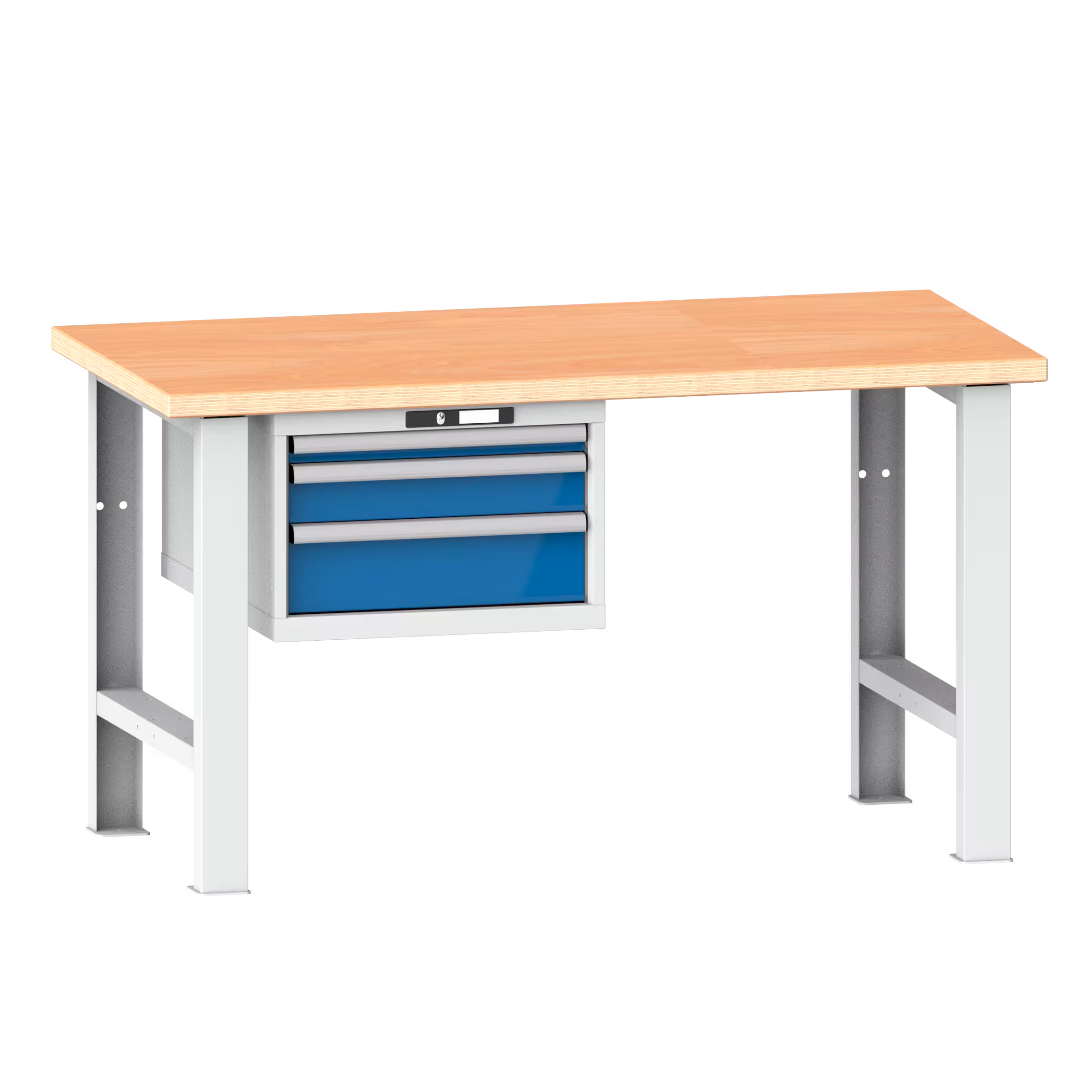 Werkbänke: Mit Multiplex- oder Buchenplatte inklusive Vormontage und Befestigungsmaterial. Schubladenschrank sowohl rechts als auch links montierbar.