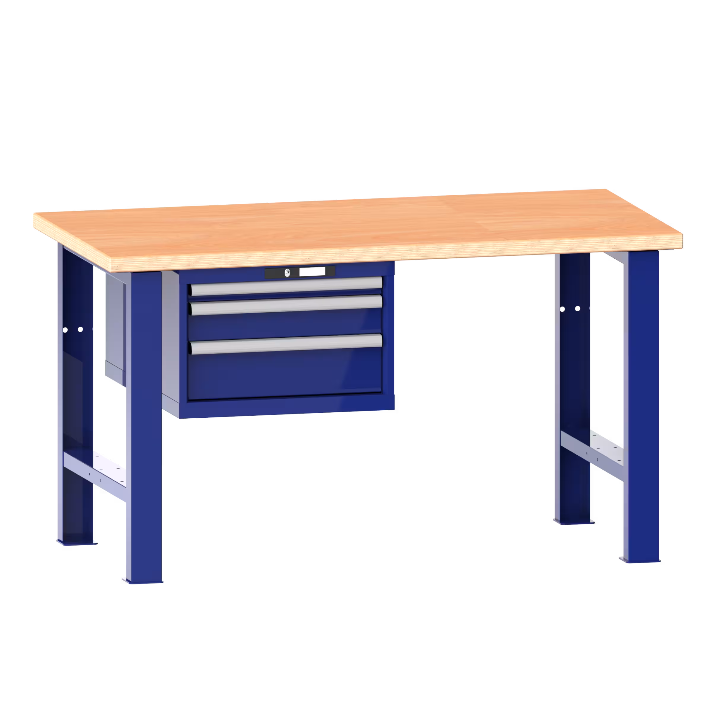 Werkbank 27x36E (BxTxH) 1500x750x890mm 3 Schubladen (1x50/1x100/1x150) 75kg Multiplex RFID Lock Ultramarinblau RAL 5002