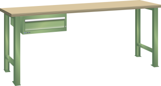 Werkbank 27x36E (BxTxH) 1500x800x850mm 1 Schublade (1x150) 75kg Buche KEY Lock Resedagrün RAL 6011
