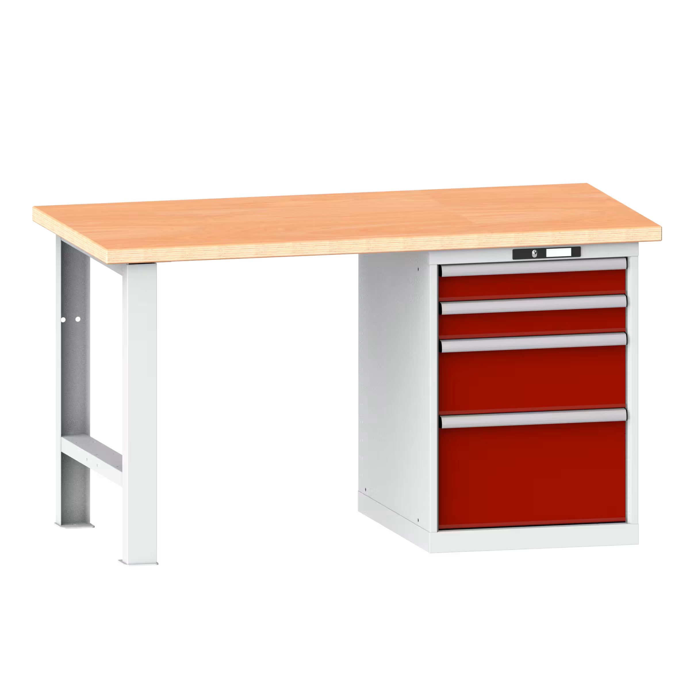 Werkbank 27x36E (BxTxH) 2000x750x840mm 4 Schubladen (2x100/1x200/1x300) 75kg Multiplex KEY Lock Lichtgrau RAL 7035/Rubinrot RAL 3003