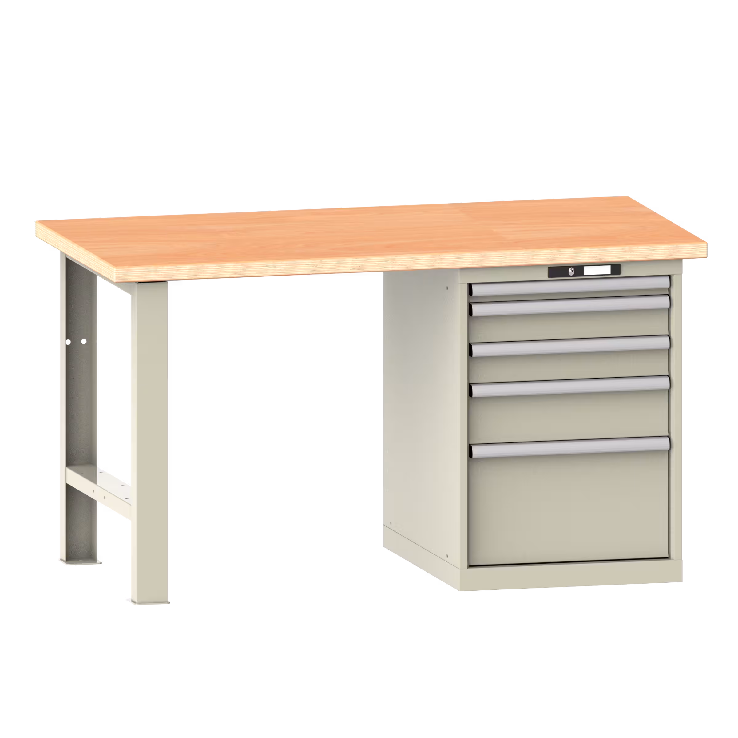 Werkbank 27x36E (BxTxH) 2000x750x840mm 5 Schubladen (1x50/2x100/1x150/1x300) 75kg Multiplex KEY Lock Kieselgrau RAL 7032