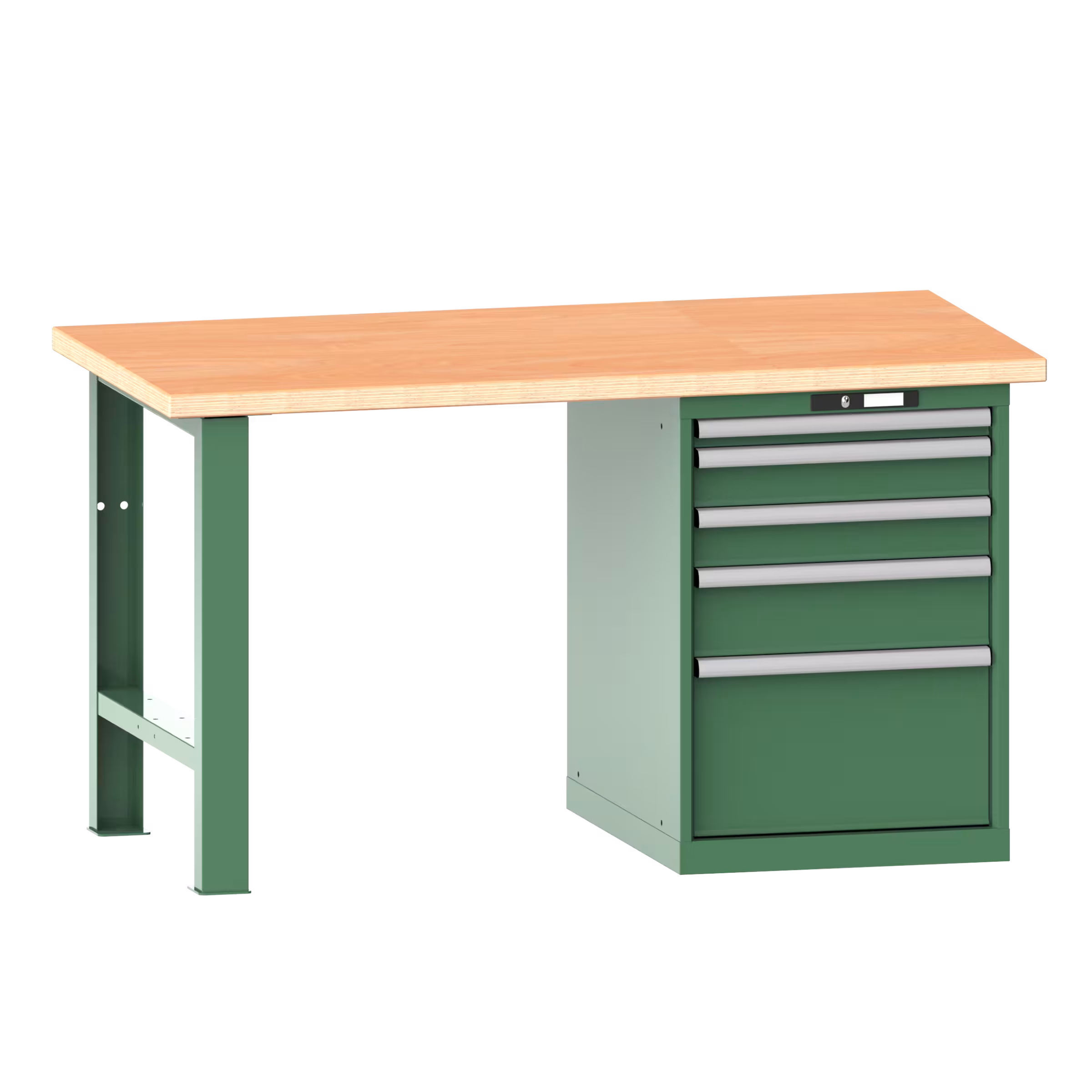Werkbänke: Mit Multiplex- oder Buchenplatte inklusive Vormontage und Befestigungsmaterial. Schubladenschrank sowohl rechts als auch links montierbar.