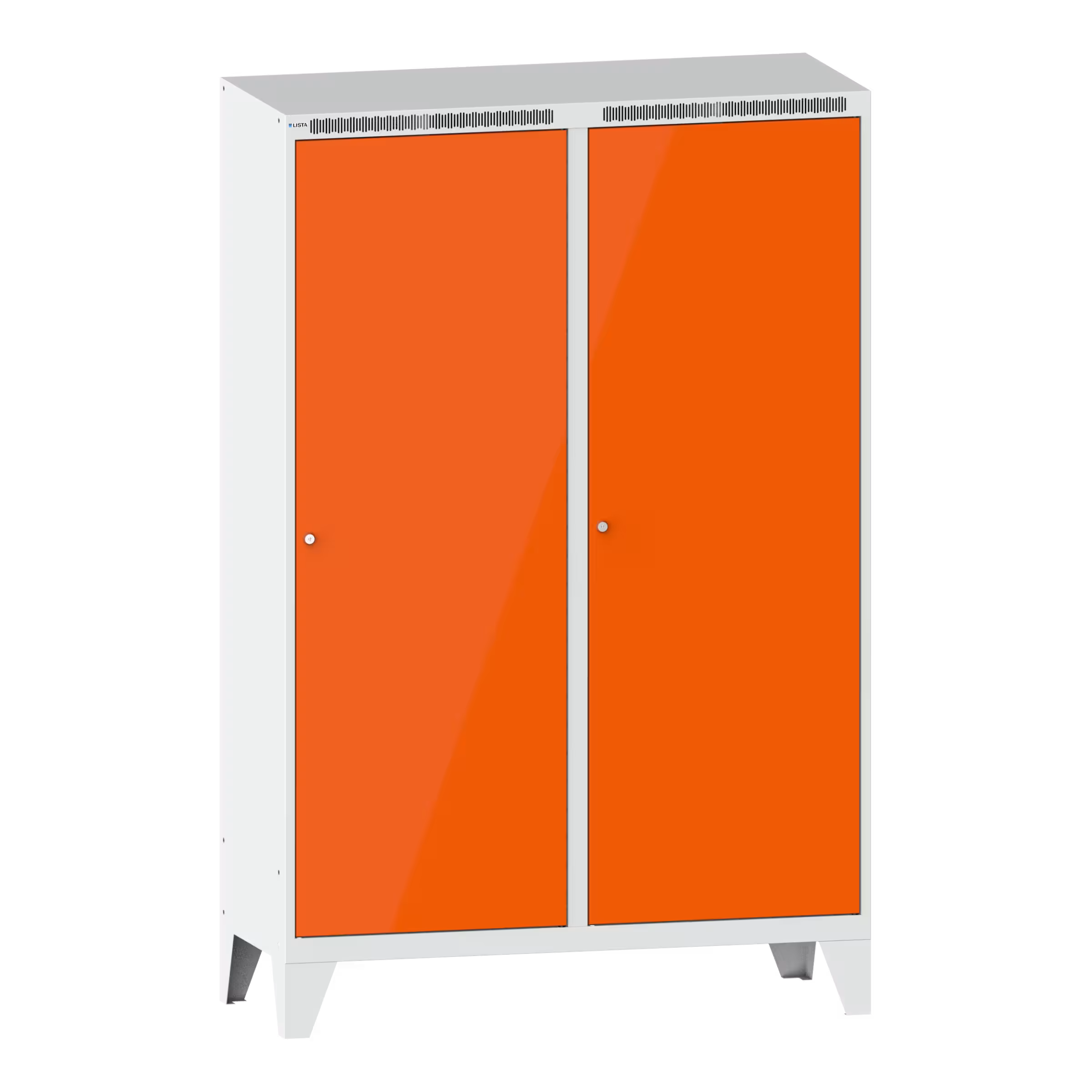 Clothes locker (WxDxH) 1200x500x1850mm 4 compartments with feet, plain doors, KEY Lock Light grey RAL 7035 / Orange RAL 2004