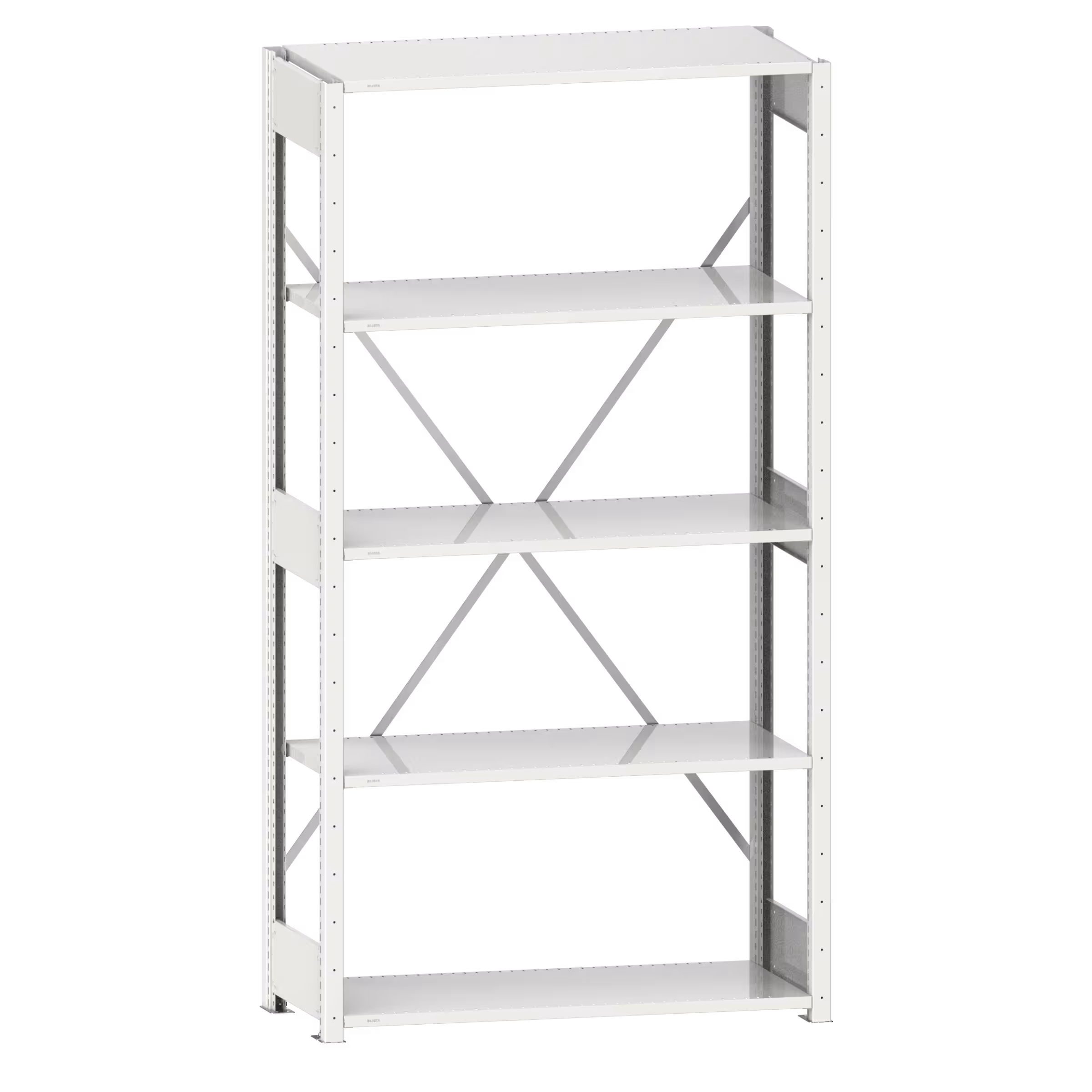 Universal shelving L1006 basic unit (WxDxH) 1000x400x2200mm 5 shelves slotted (160kg) Pure white RAL 9010