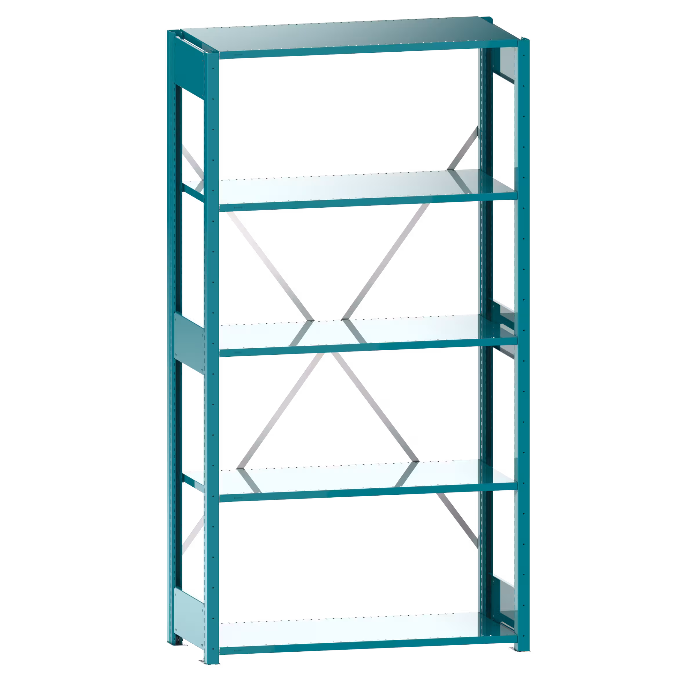 Universal shelving L1006 basic unit (WxDxH) 1000x400x2200mm 5 shelves slotted (160kg) Turquoise blue RAL 5018