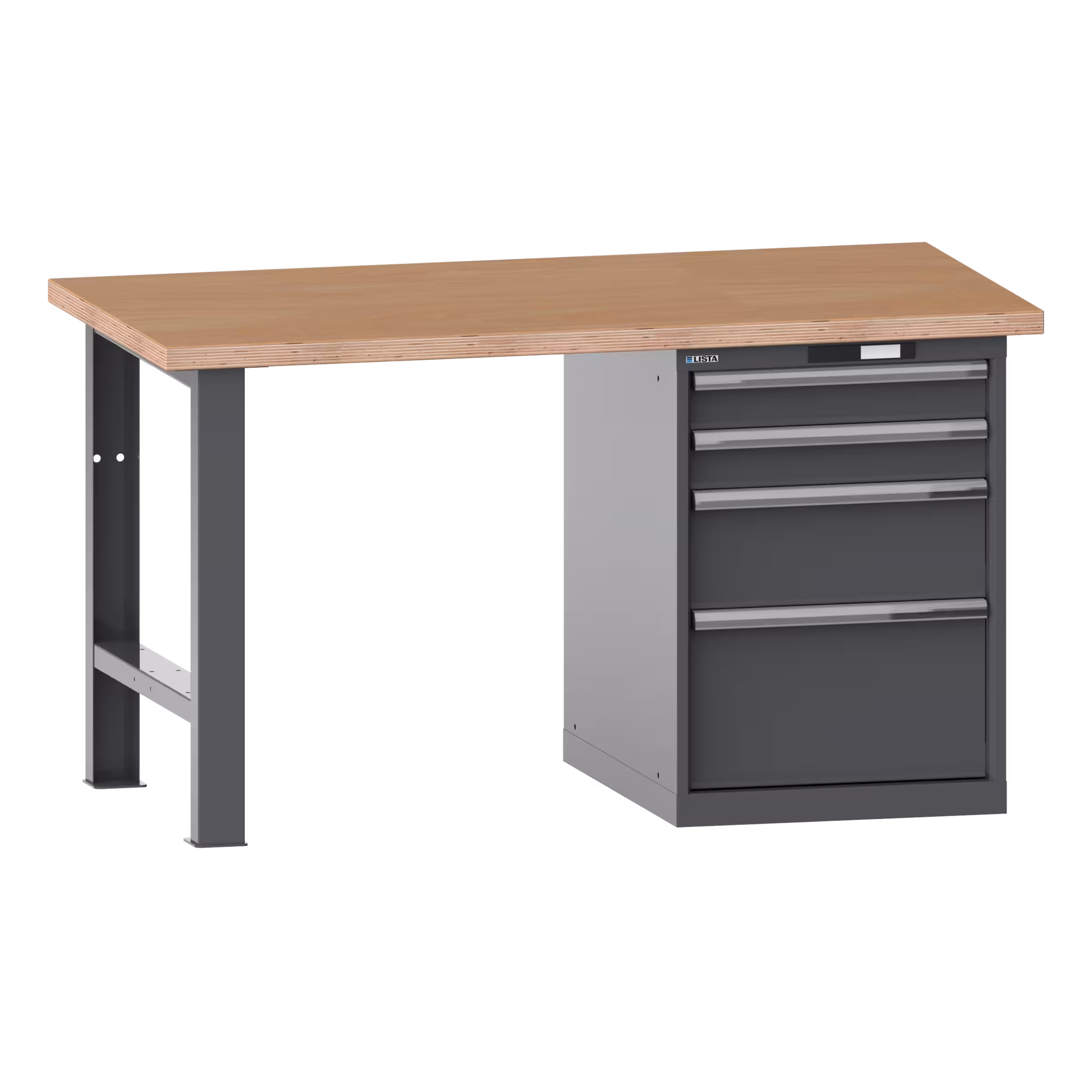 Workbenches: With multiplex or beech top including pre-assembly and fastening material. Drawer cabinet can be fitted on either the right or the left.